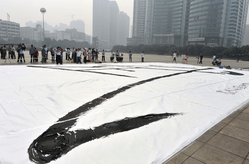为“2011长沙世界自由搏击王者争霸赛”书写328平米“武”字