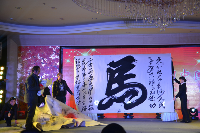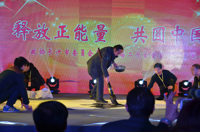 长沙政协联欢晚会上书写“马”字送新年祝福