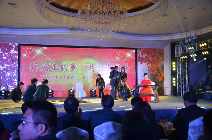 徐双喜、刘慧扬两位委员于二0壹四年元月九日代表“九三”学社、文化艺术界在长沙市政协第十一届二次全会联欢晚会上琴书合作、同台表演。在刘慧扬委员优美的《梅花三弄》古琴声响起后,徐双喜用榜书书写了“马”字,作品尽寸:365*215CM。以此衷心祝福长沙及全国人民马年吉祥,马到成功!在整个表演过程中,全场多次报以热烈的掌声!