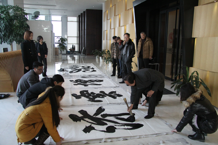 2014年元月14日,徐双喜应浙江省某企业邀请,在杭州大厦C栋办公大楼,挥毫泼墨,即兴