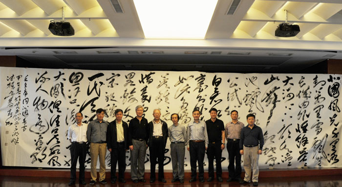 孔祥有副主任等领导在徐双喜创作的巨幅作品《沁园春.雪》前合影。