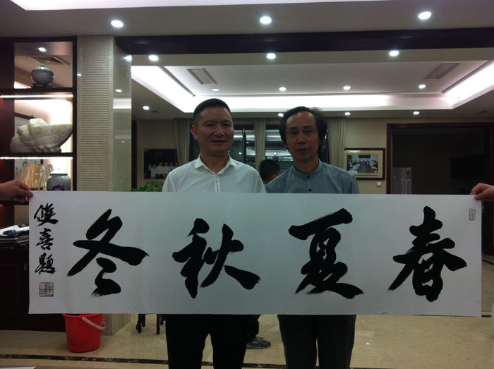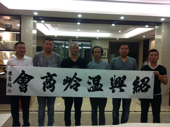 5月11日下午,又因浙江省春夏秋冬纺织有限公司及绍兴温岭商会之邀,马不停蹄地赶往两单位所在的温岭商会大楼进行书法交流活动,并为他们题写了企业名称。