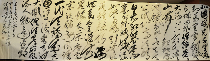 应浙江省杭州市燃气集团有限公司之邀,2014年5月10日上午九点,徐双喜赴该公司参加书法交流活动。现场榜书创作的10米2.8的《沁园春.雪》大气磅礴,线条流畅奔放,布局空灵舒展,美仑美奂,得到了浙江省原人大副主任孔祥有等领导和现场观众的一致好评!