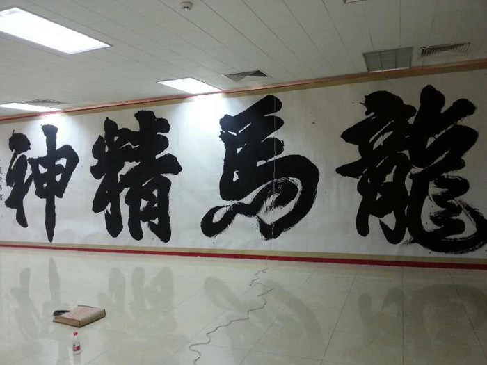 徐双喜的巨幅榜书“龙马精神”特别具有震撼力和视觉冲击力,吸引了很多观众前来观看并拍照留念。作品尺寸:10*2.8米。