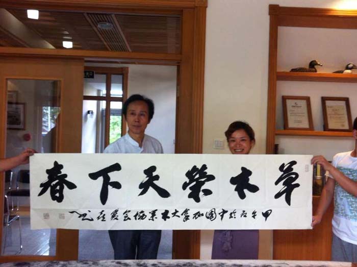 2014年7月31日下午,徐双喜应加拿大木业协会驻中国办事处邀请,参观办事处,并为公司题词"草木荣,天下春"。