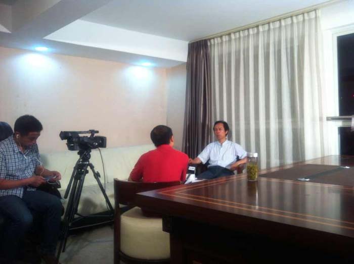 中央电视台老故事频道的记者闻讯全程跟拍了徐双喜上海之行,图为在现场采访徐双喜。