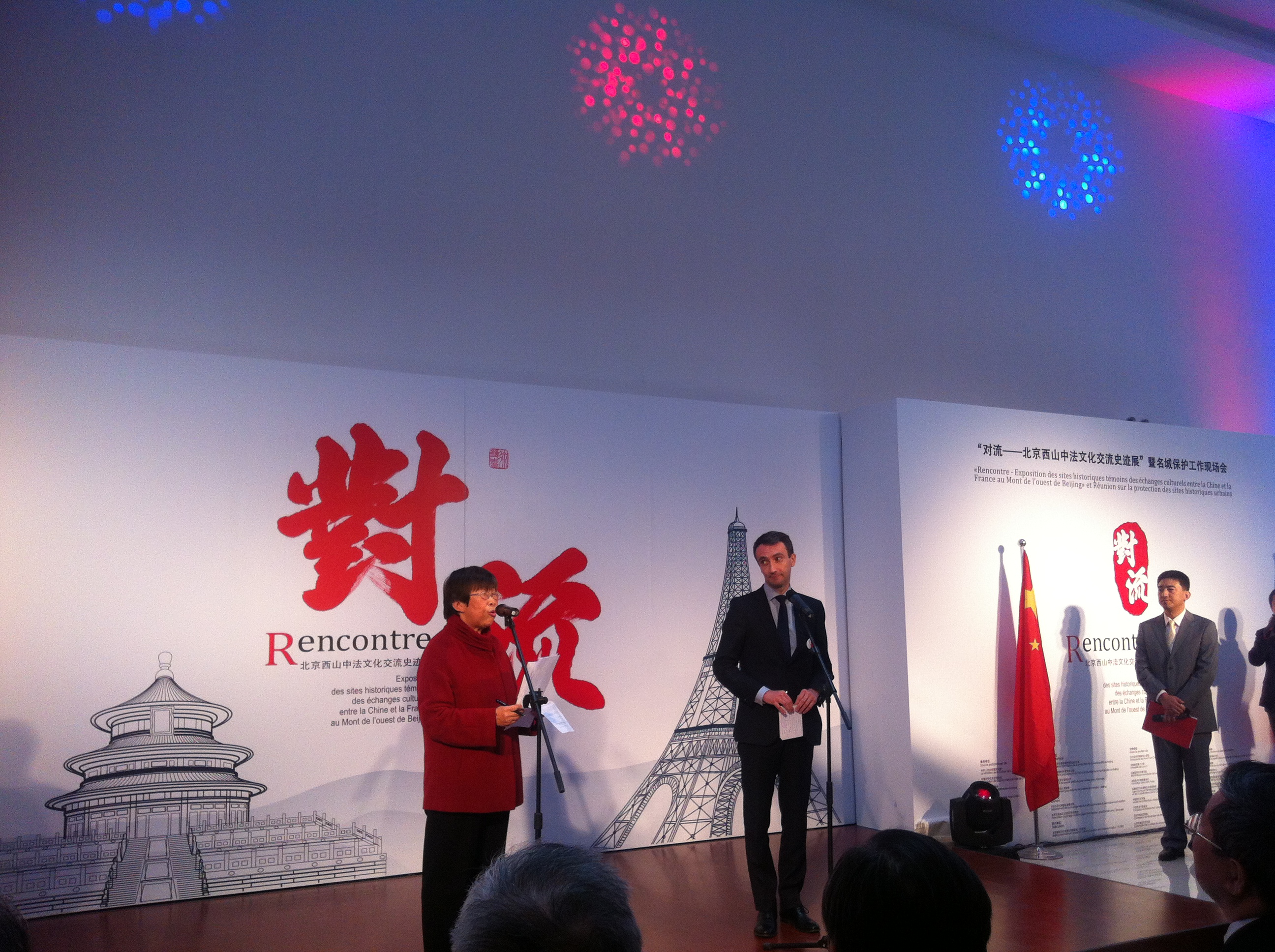 二O一四年十月三十一曰上午九点,由北京名城委办公室、北京市外宣办、北京市对外友协、海淀区政府共同主办的“对流一一北京西山中法文化交流史迹展暨名城保护工作现场会"在北京四十七中隆重开幕。文化部 、对外友协 、法国驻华大使馆等领导以及海淀区四套班子领导出席并做了重要讲话。