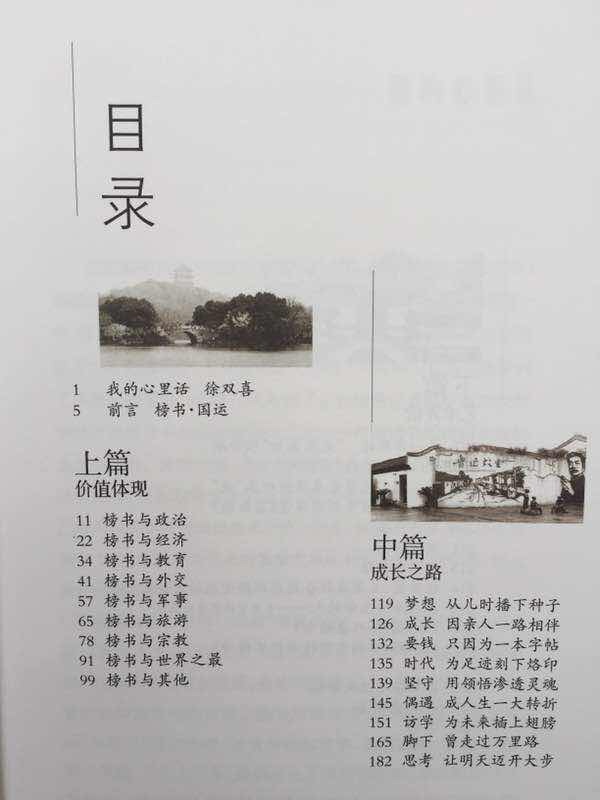 该书由上篇:价值体现;中篇:成长之路;下篇:艺术评价三篇及“我的心里话”(徐双喜)及后记(课题组)构成。上篇从徐双喜榜书对中国的政治、经济、教育、军事、外交、旅游、 宗教、世界之最、其它九个方面的作用及影响,通过图文并茂的方式,研究、阐述了被誉为“中国榜书第一人”的徐双喜先生的榜书艺术对中国政治、经济等多个领域的影响和贡献。中篇对徐双喜先生的艺术成长之路进行了朴实无华却感人至深的描述。下篇则通过刻有徐双喜榜书的风景名胜区、书法界领导、专家及社会各界知名人士对徐双喜书法的评价从侧面反映了徐双喜榜书的艺术价值和成就!