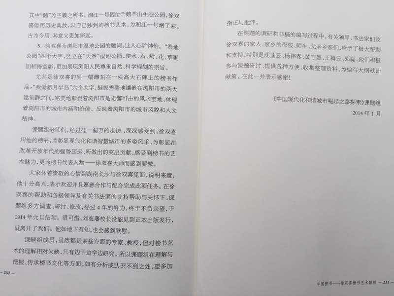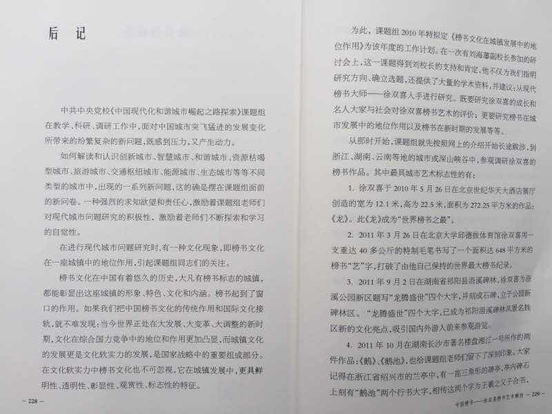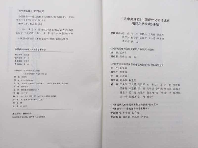 由中共中央党校课题组历经四年研究撰写,为中央党校校级研究课题《中国现代化和谐城市崛起之路探索》之一的《中国榜书—徐双喜榜书艺术解析》一书,已于2015年2月12日由中共中央党校出版社出版发行。