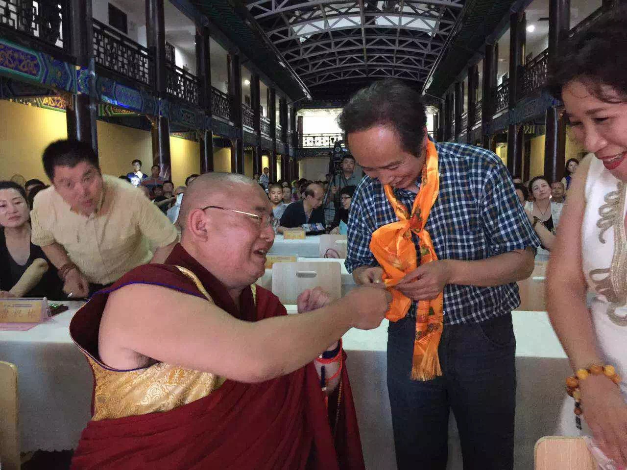 来自西藏的金刚法王为徐双喜先生赠送哈达并亲切地交谈。
