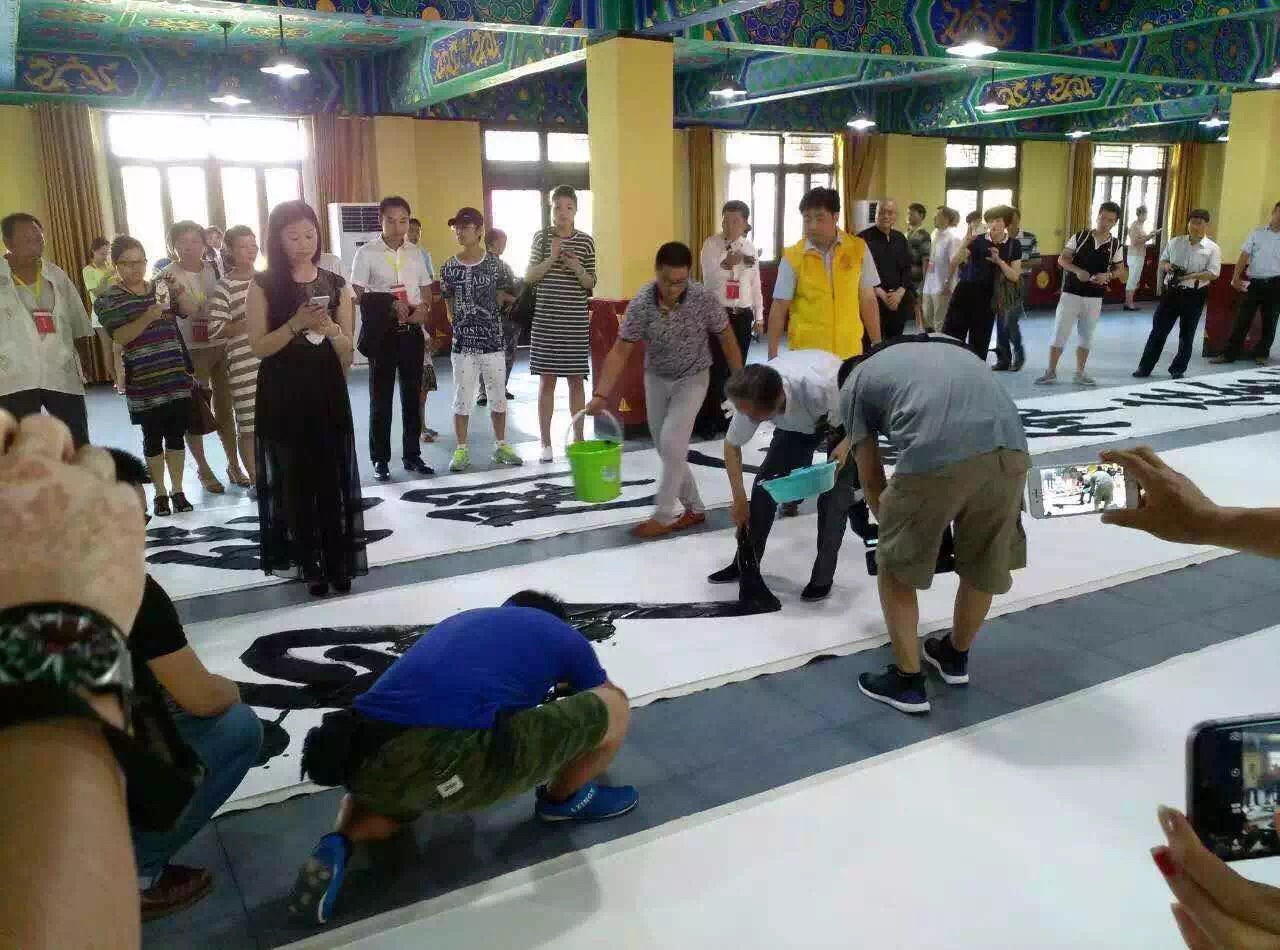 仪式上,徐双喜先生向圆觉禅林赠送了精心创作的“”菩提园林书院“”牌匾并在居士楼讲经堂进行榜书书写表演,从而把活动推向了高潮!徐双喜先生在50米长、1点5米宽的宣纸上创作了《金刚经》第一品局部。每字约1.5平方米,字字隽秀妍美,古拙大气,撼人心魄!笔笔入魂,入木三分,令人荡气回肠!引来现场国内外嘉宾如潮好评!