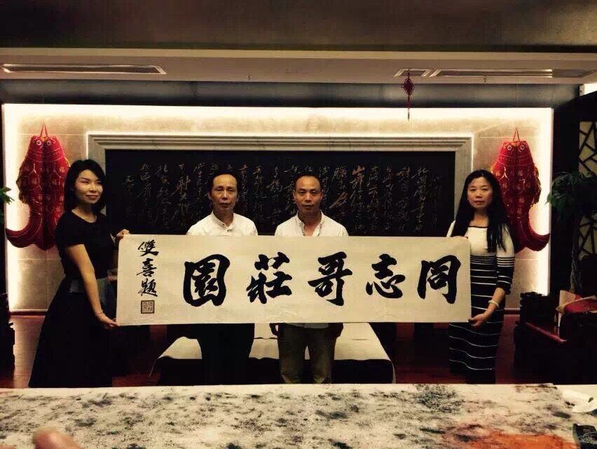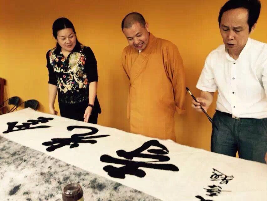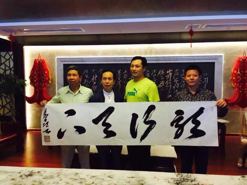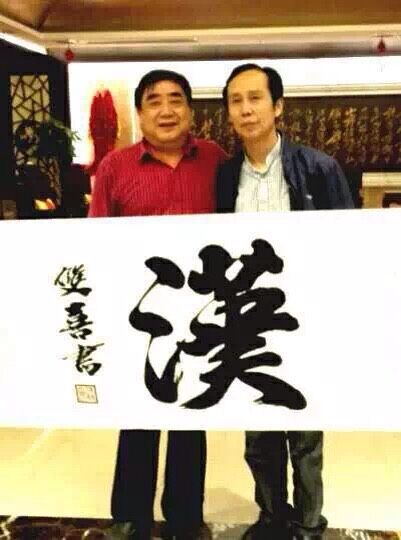 为井冈山市汉文化研究院题写“汉”字,并与刘森严院长合影留念。