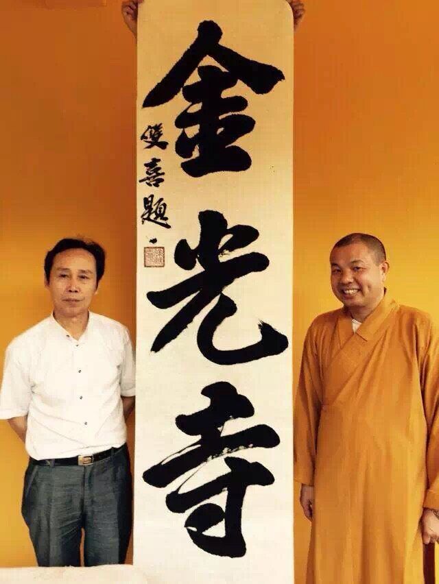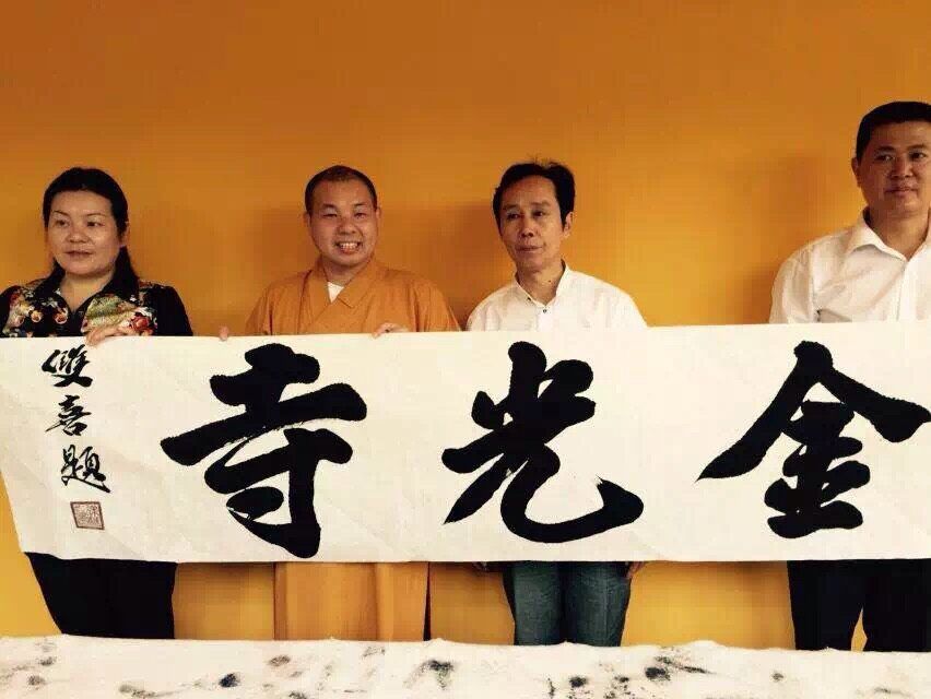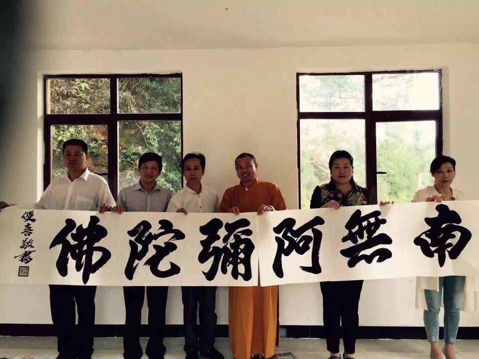 为井冈山正在兴建的金光寺题写“南无阿弥陀佛”。