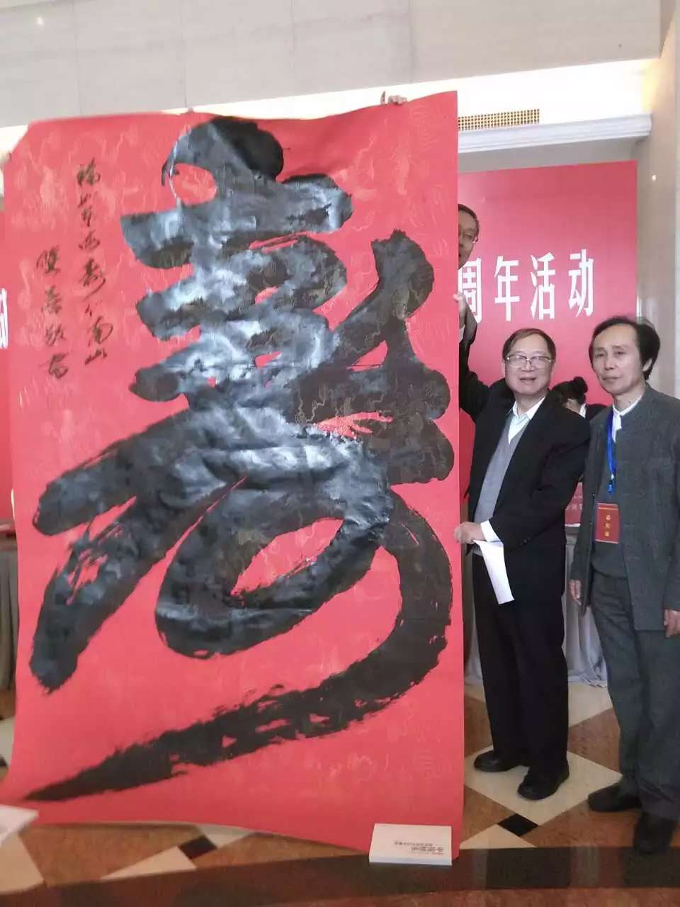 在中国共产党上海发起组成员之一、上海社会主义青年团书记俞秀松的继子俞敏先生、新中国新民主主义青年团中央第一书记冯文彬之女冯延曦女士等的陪同下,著名书法家徐双喜先生一行在北京胡耀邦总书记和李昭阿姨住处的会客厅,将装裱精美的大“寿”作品(2.8米*1.9米)赠送给李昭阿姨,衷心祝她:福如东海,寿比南山!