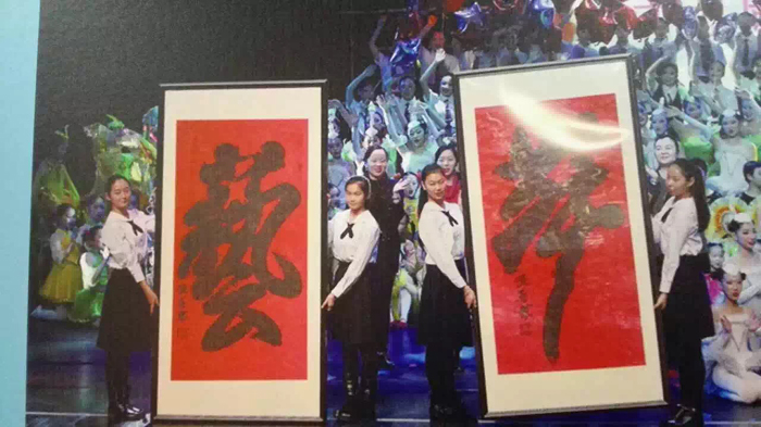 著名书法家、"中国榜书第一人"徐双喜先生应邀榜书书写了"舞"、"艺"两字赠送给活动主办方,为本次活动增光添彩,