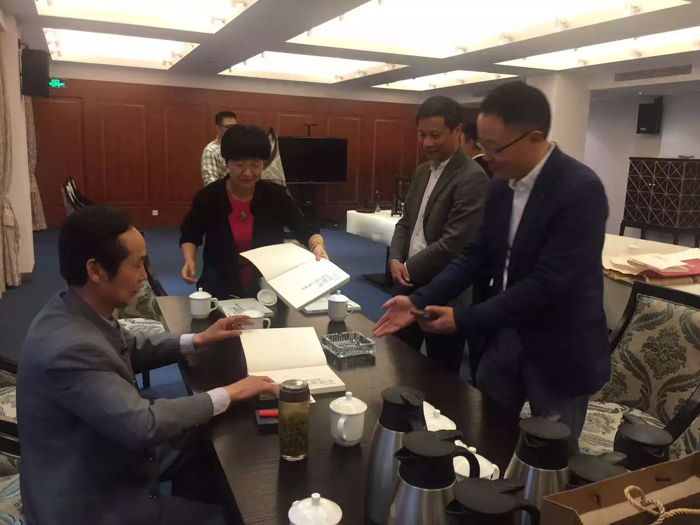 章燕主席及杭州市侨联活动中心其它领导、工作人员请徐老师在《中国榜书—徐双喜榜书艺术解析》书上签名留念。