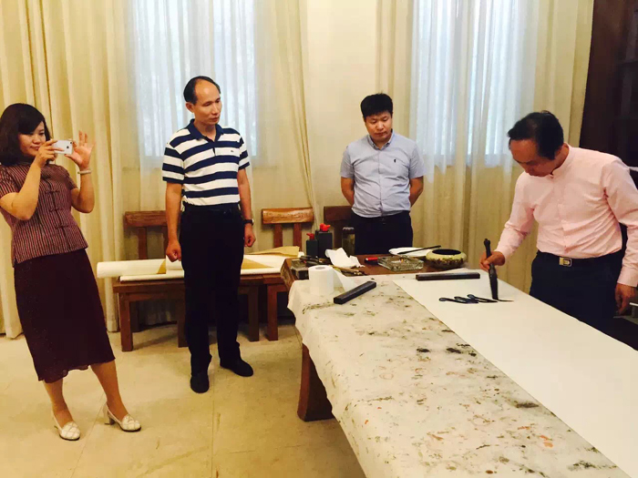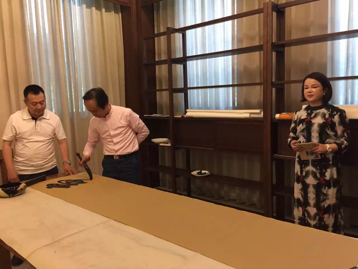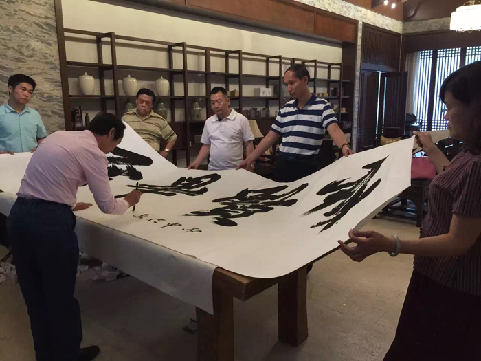 看着徐老师从容淡定之间一幅幅龙飞凤舞、飘逸潇洒的翰墨便跃然纸上,世侨会领导激动地表示:要进一步加强与徐双喜老师的合作,一起弘扬中华的传统艺术,让榜书艺术走向世界!