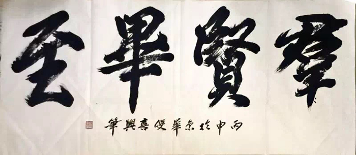 应世侨会之请,徐老师在侨英汇酒店现场挥毫泼墨,为酒店书写了笔力遒劲、气势磅礴的榜书作品“群贤毕至”(尺寸:3.65*1.45米),及古拙、大气的“侨英汇”店名。还为侨英汇会旗下6月19日即将开业的弘道艺术馆书书写了“融汇贯通”、“万祥云集”(尺寸:2.14*0.7米”。)以表祝贺!
