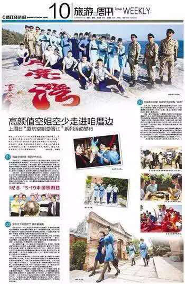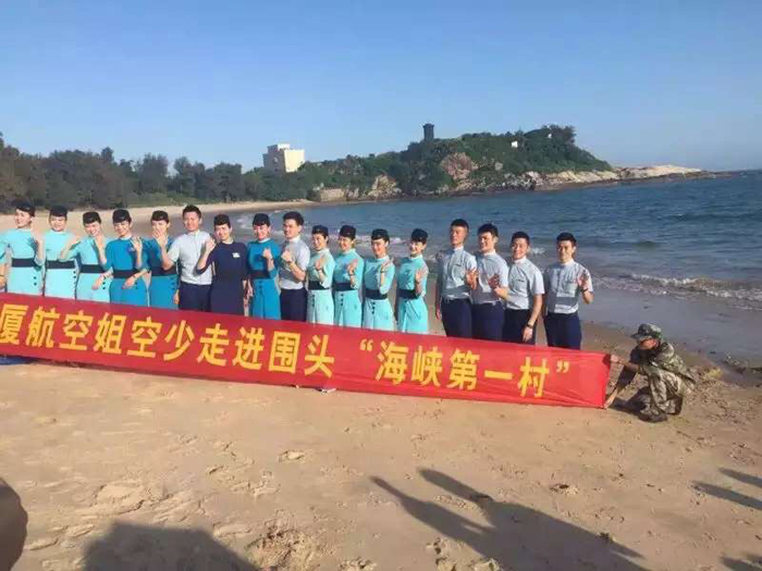 晋江经济报5月17日头版报导:5月16日厦航高颜值空姐空少来到了福建晋江市围头村旅游,参观了围头村著名的风景区月亮湾,并在刻有“中国榜书第一人”、著名书法家徐双喜先生题词的“月亮湾”三字旁合影。据围头村洪水平书记介绍:月亮湾三字刻在海滩上后,游客又多了一个游玩拍照的景点,成为了景中之景。吸引了越来越多的游客去游玩合影!