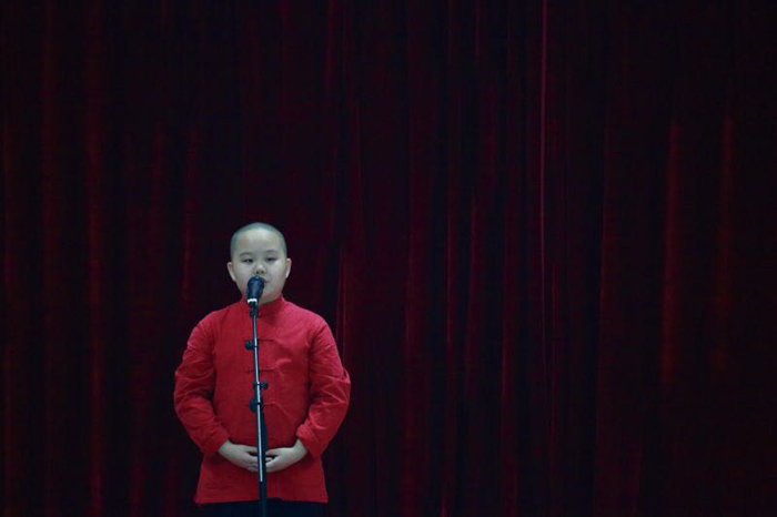 孔子的76代孙—孔祥翔小朋友在拜墨礼中声情并茂地朗诵《兰亭序》、《春江花月夜》等名篇。