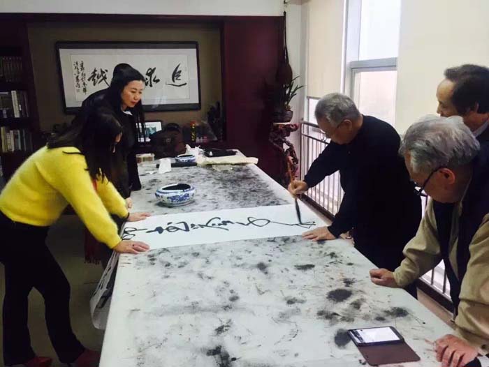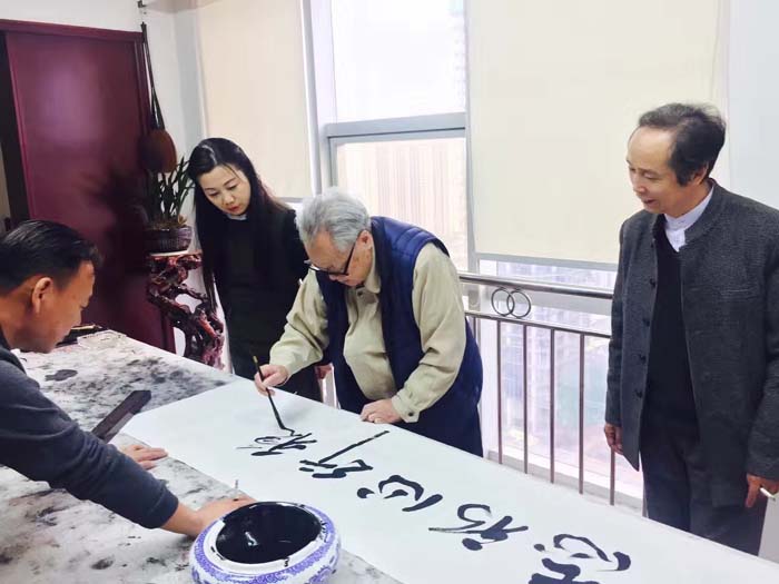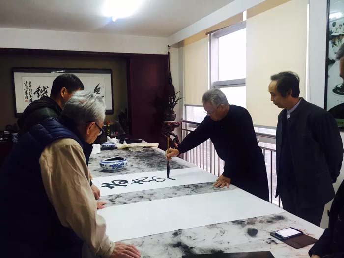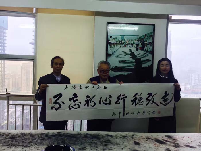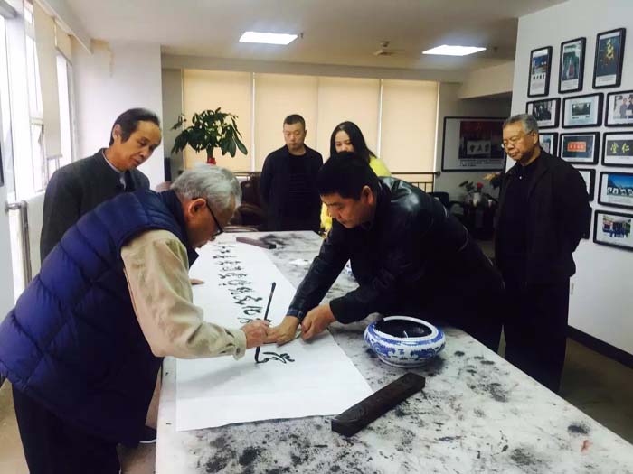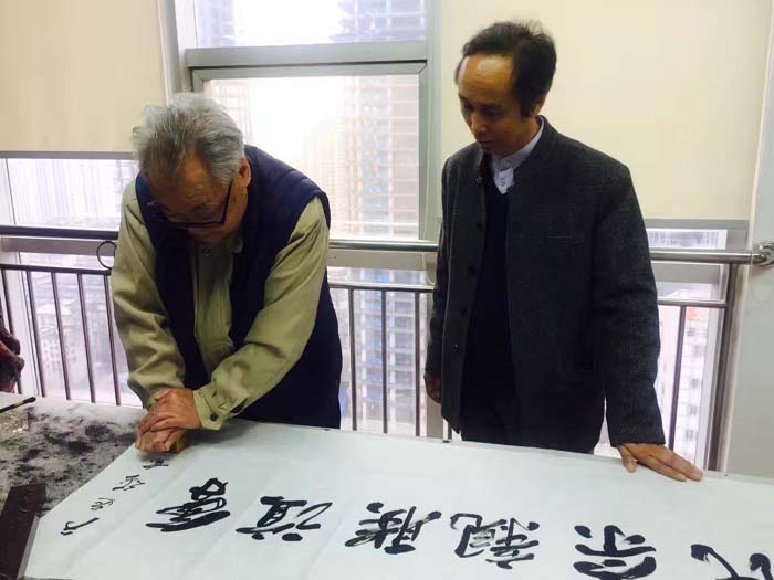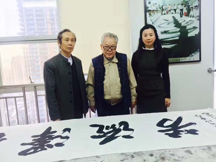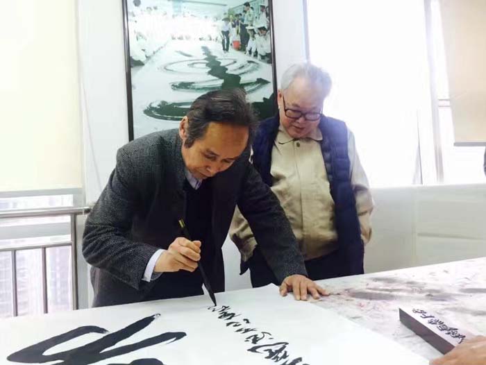 湖南省委原常委、湖南省委原副书记文选德偕湖南省公安厅原常务副厅长、中国老干部书法家协会副主席励明安一行做客徐双喜长沙书法工作室。三位书法家在一起谈书道,挥翰墨,拉家常,其乐融融!
