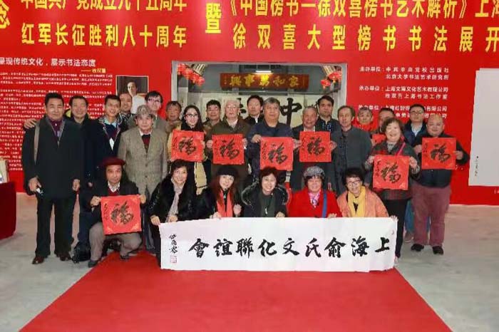 徐老师深厚的艺术造诣和人格魅力得到了大家一致好评!俞健飞会长表示:以后上海俞氏文化联谊会举办的大型活动地点将把徐双喜上海榜书艺术馆做为首选!