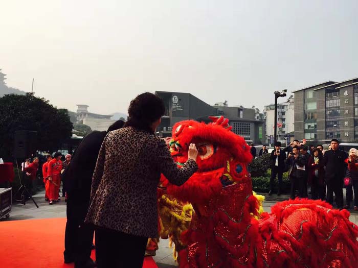 2017年2月17日上午九点,杭州吴山名悦古玩城前锣鼓震天,龙腾狮舞,热闹非凡。