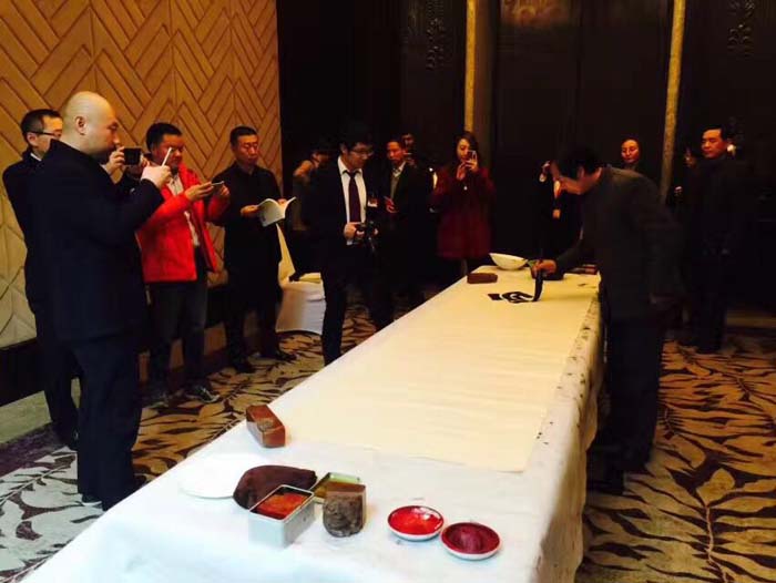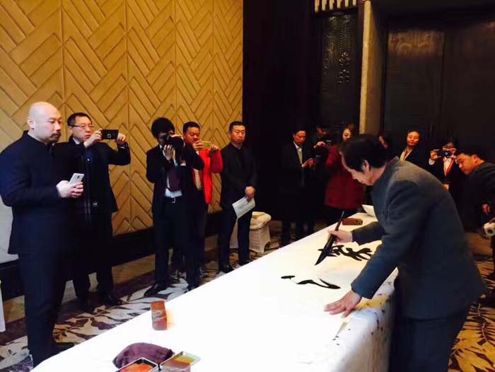 西郊论道(张恭春) 2017.3.8 跨界融合铸品牌, 榜书艺术抒情怀。 “东家汇”里论“商道”, 天地人和奔未来。