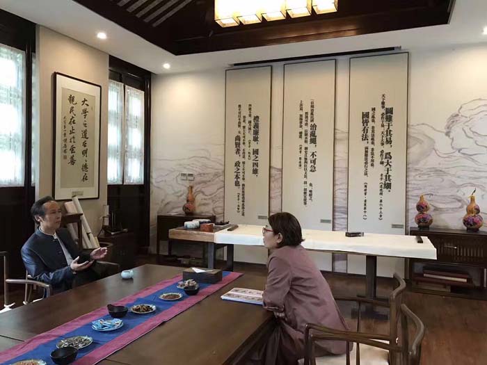 徐双喜先生与李瑞英老师一行在中共中央党校留筠馆国学堂品香茗、论书法。
