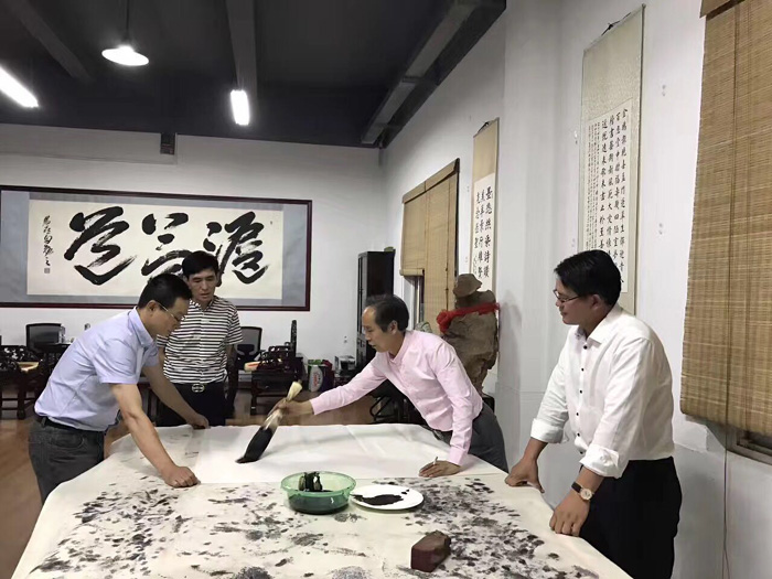 浙江银行上海分行顾清良行长参观徐双喜榜书艺术馆。