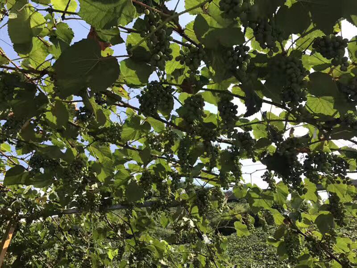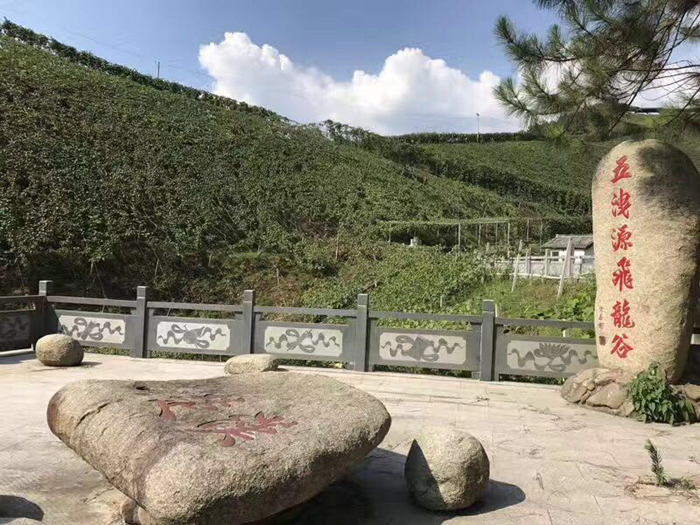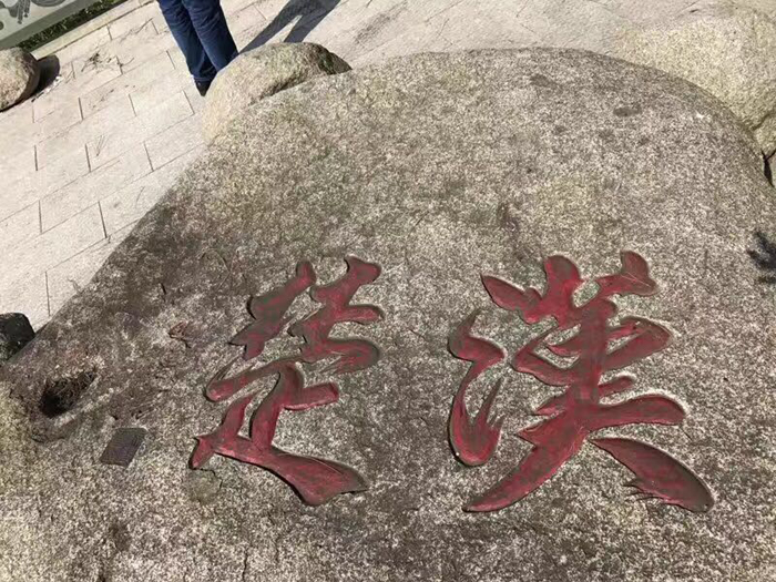 驱车来到诸暨紫阆乡村时,满山遍野,硕果累累的葡萄园让我们沉醉。但此时的葡萄还青涩未熟,不禁有点遗憾!空坪中一块平坦的酷似棋盘的岩石上我们见到了徐老师因地制宜题写的“楚汉”二字,不由心弛神往:清风明月之一下,嗅着葡萄的清香,两位老叟在此下着象棋,该是多美多浪漫的一幅画面……