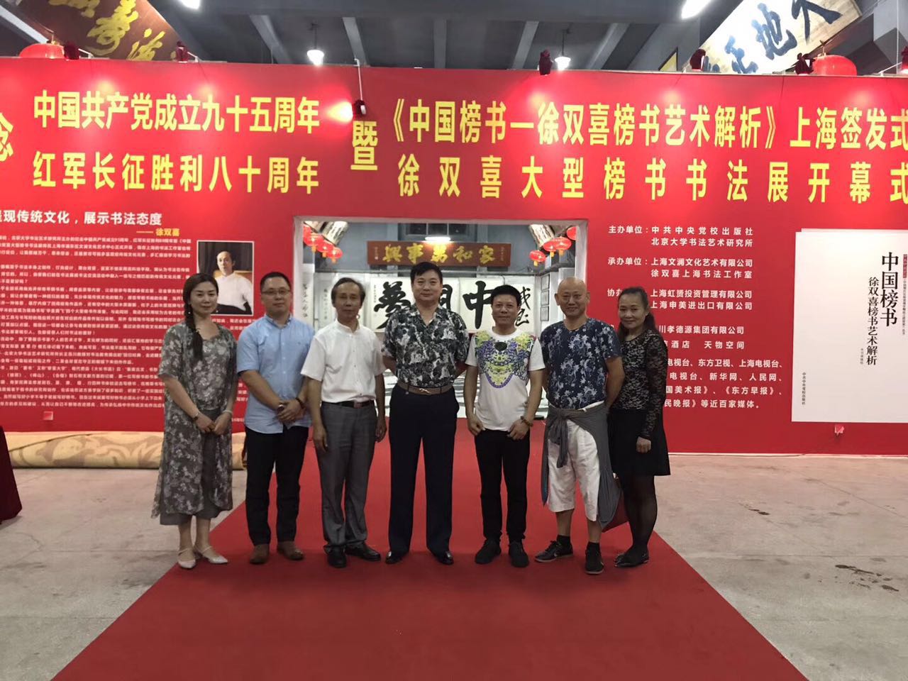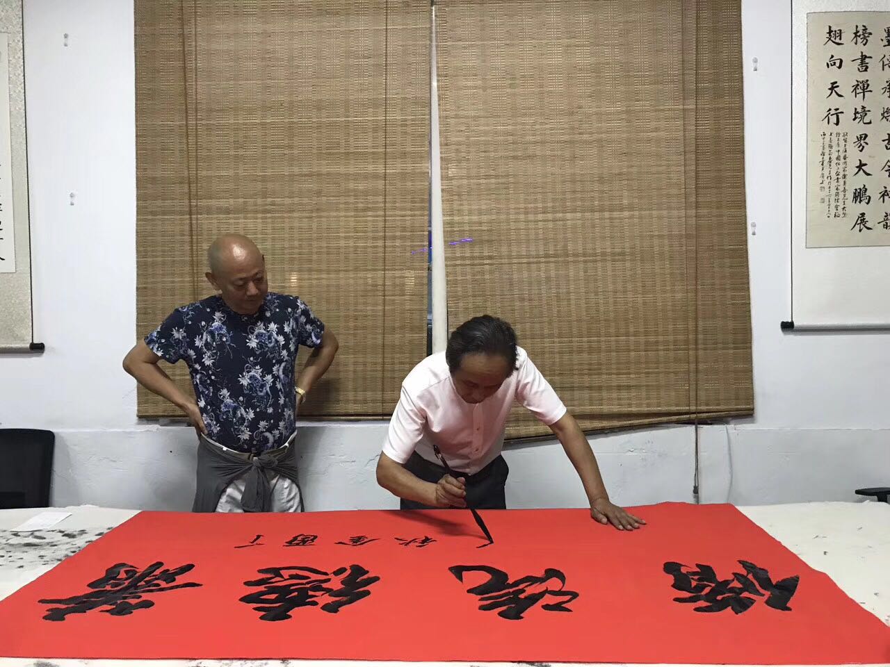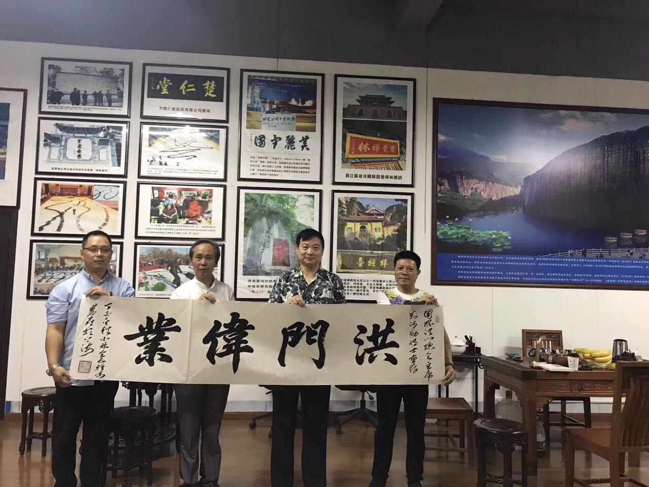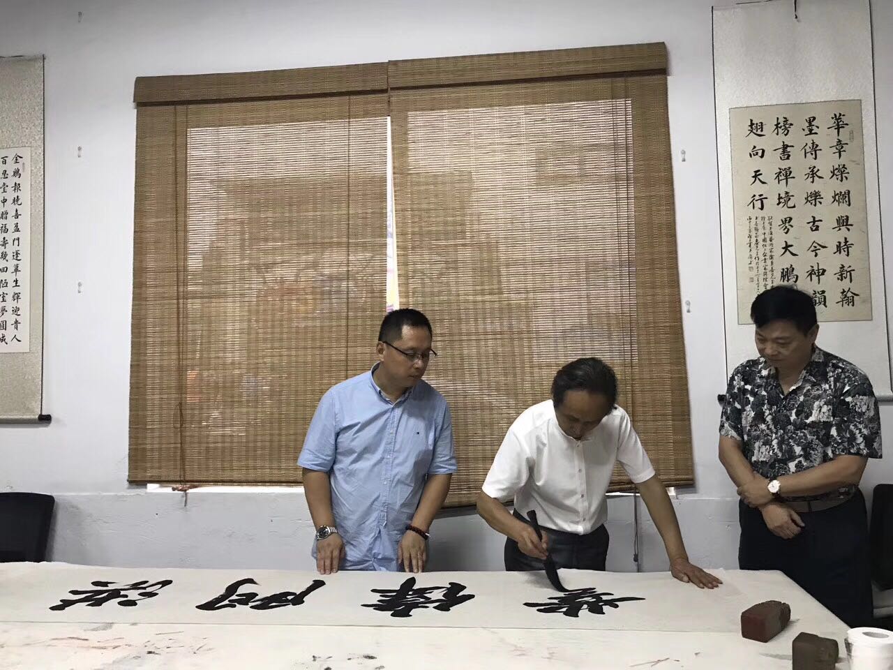2017年9月6日下午四点半,中国对外交流协会常务会长、中国拥军优属基金会副秘书长李小林先生、洪门大陆首席代表刘爱君先生一行莅临上海浦东陆家嘴徐双喜榜书艺术馆参观指导。 应李小林会长和刘爱君先生之请,徐双喜老师现场为洪门领袖刘沛勋博士书写了“洪门伟业”。还为台湾中国国民党前主席洪秀柱女士题写了“洪”字。
