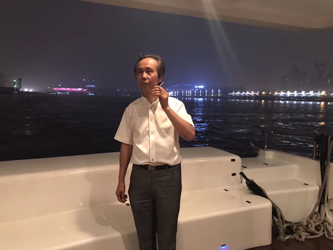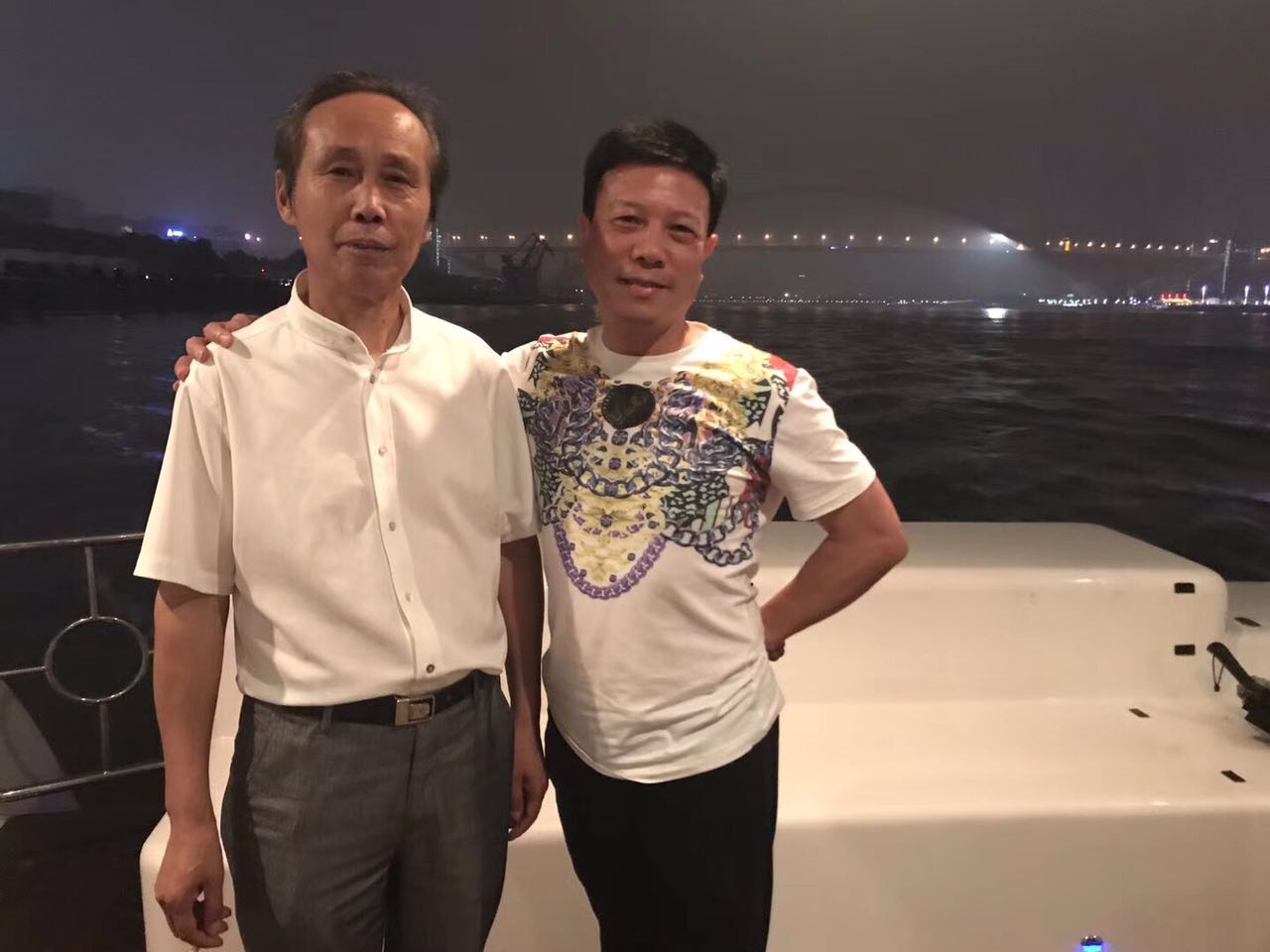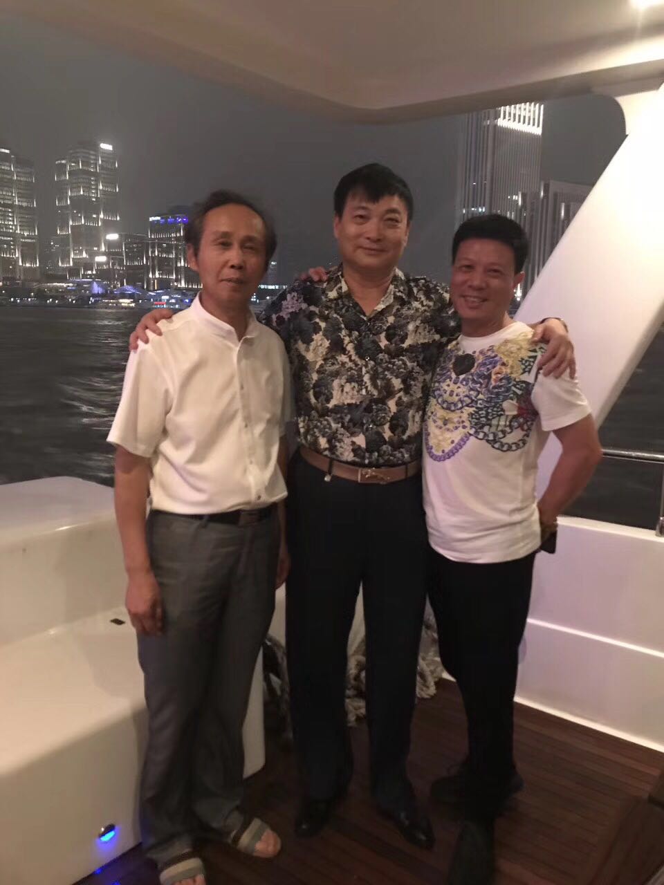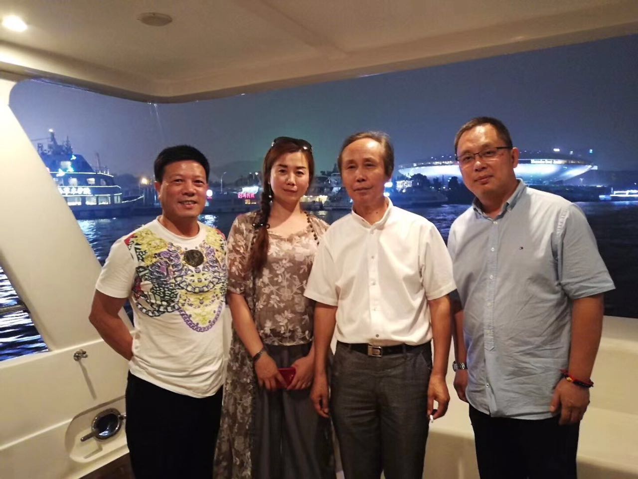 2017年9月6日晩九点半,中国对外交流协会常务会长、中国拥军优属基金会副秘书长李小林先生、著名书法家徐双喜先生、上海文澜文化有限公司刘青峰董事长一行在上海邮轮游船游艇协会朱希秘书长陪同下,乘坐朱总私人游轮夜游黄浦江。