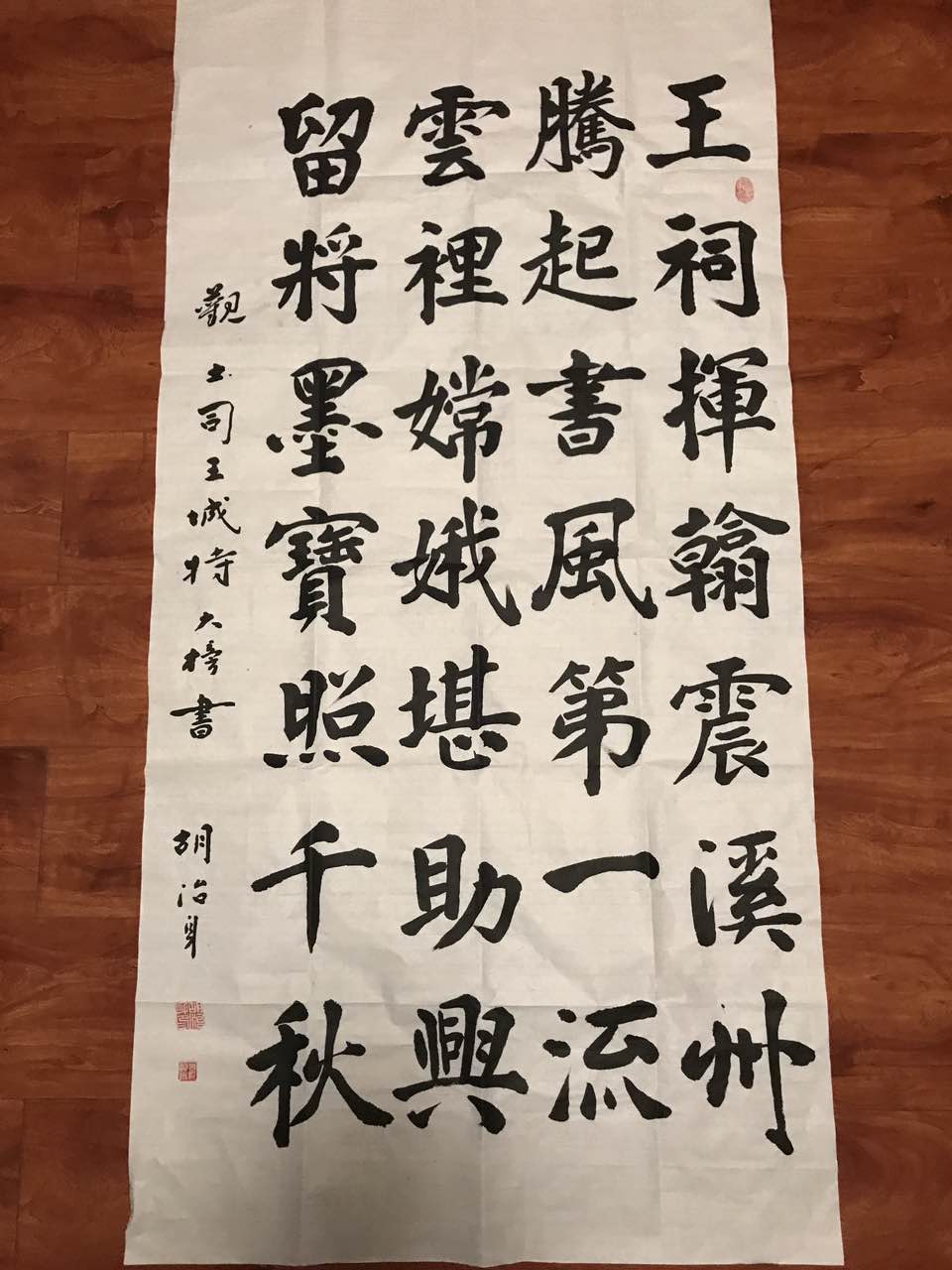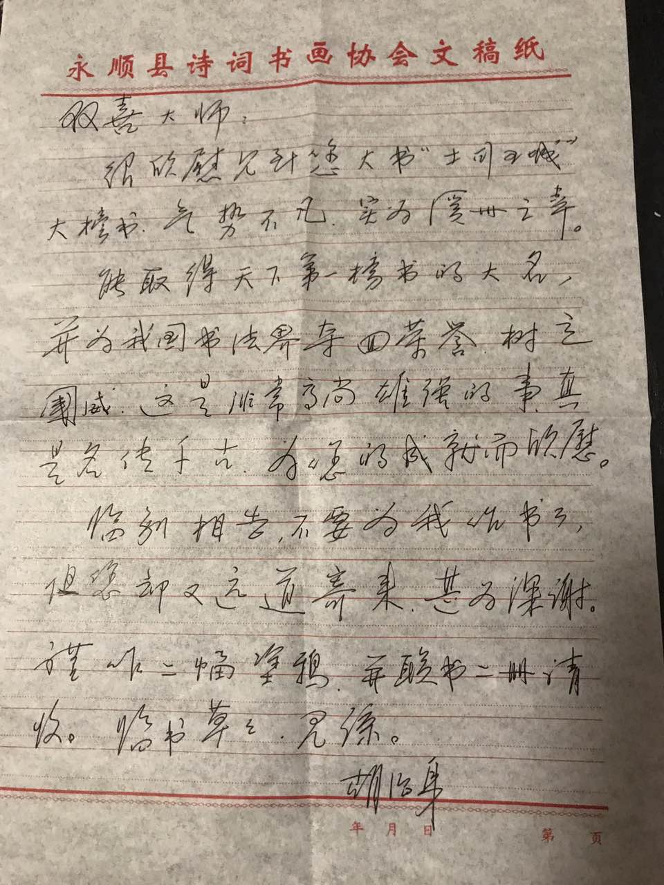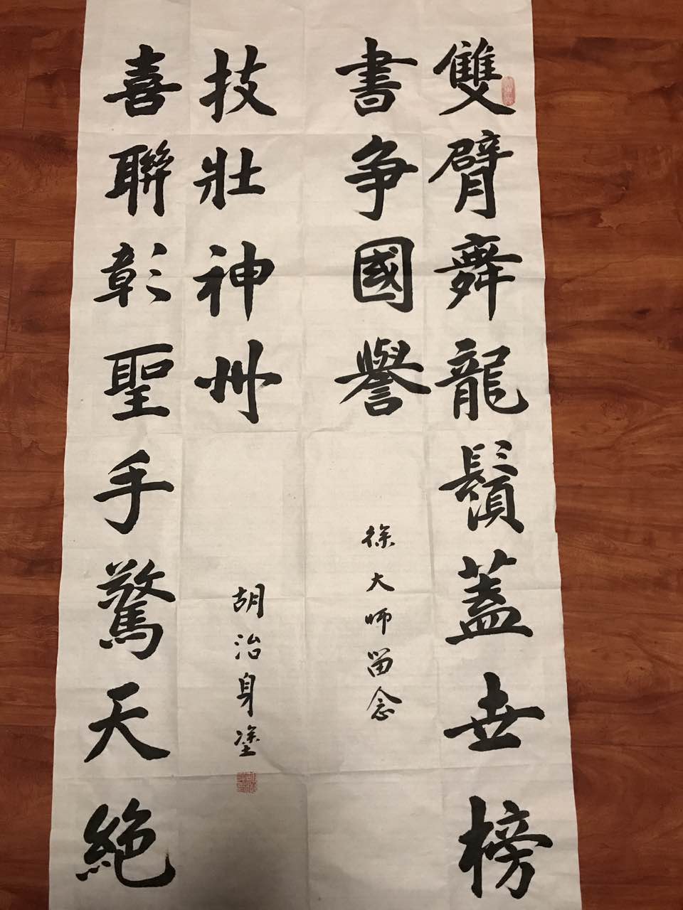 深为双喜先生的品德和才华所触动,胡治身先生怀着激动的心情撰诗两首并书成书法作品。还用钢笔写了一封言词恳切的信一起寄给徐双喜先生,成为书坛一段佳话。