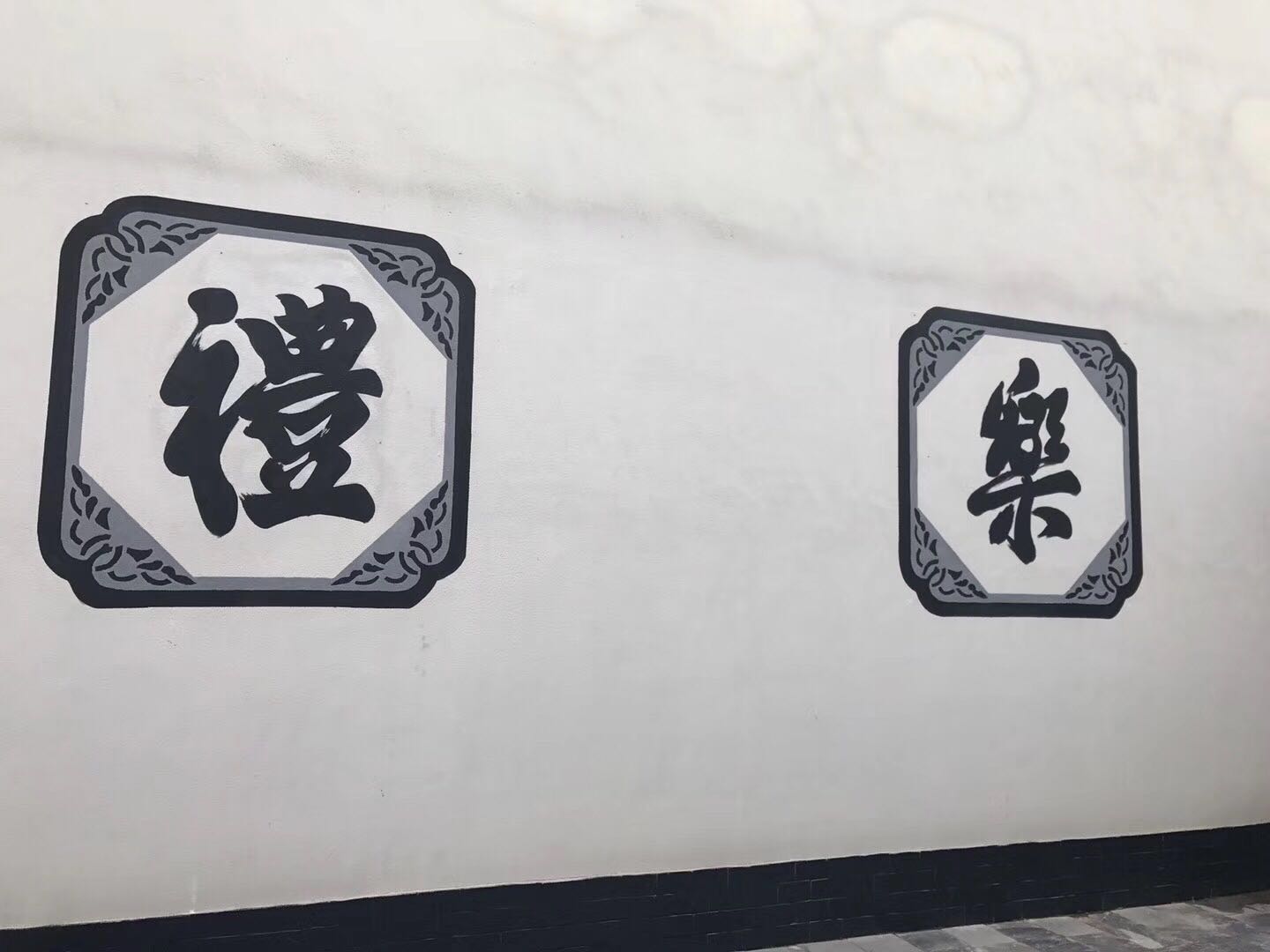大宗祠墙壁上的“礼”、“乐”、“德”、“孝”出自徐双喜先生手笔。